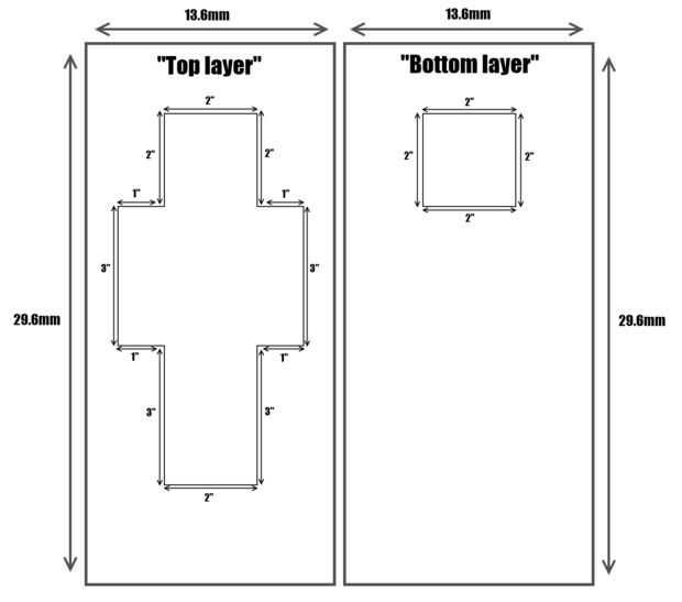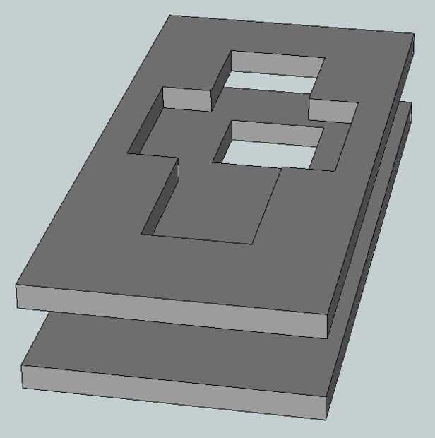 Elegí tapetes de espuma EVA de 12mm ya que es el material que tenía en mano, elegí 12mm porque quieres espuma es gruesa para el modelo 2 fichas y porque mi modelo es 1/4" densamente por el azulejo, 12mm suman casi exactamente a los 2 azulejos. He hecho y subido un modelo 3D de las piezas de espuma para ayudar a visualizar la tarea en mano.