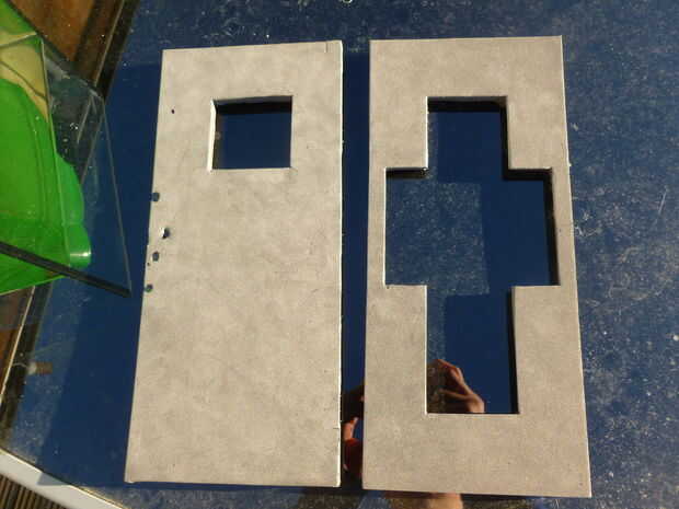 Usted tendrá que cortar las hojas de la espuma a las misma medidas como la base de la caja (en mi caso, 13,6 X 29.6.) Cuando tienes tus piezas, transfiera la plantilla de la espuma y recortar con un cúter y una regla de acero; uno es el contorno entero del modelo, el otro es sólo una ranura de la cabeza.