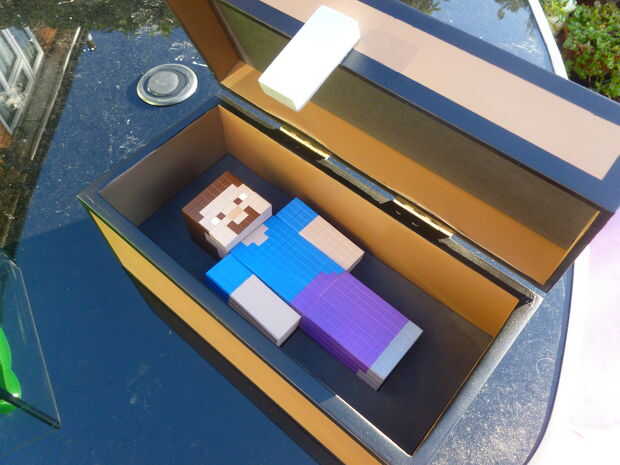 La caja se puede hacer y Steve está listo para ir con él, pero tal y como está es solo una caja hueca y si desea que Steve se siente dentro, la caja exigirá acolchado.