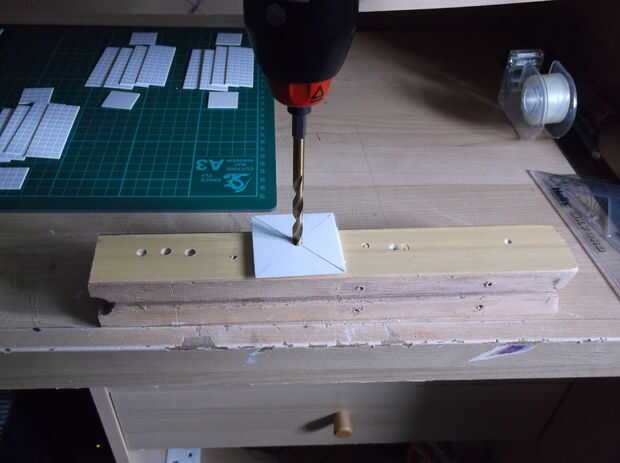 Los agujeros necesitan de perforación para el punto de encuentro de la cabeza y el cuerpo y los brazos y cuerpo, punto de encuentro. El punto de encuentro de la cabeza y el cuerpo se perforaron a la vez y lo mismo se hizo para los brazos y cuerpo puntos de encuentro, esto es para asegurar que los orificios con para cuando los tubos de 1/4" son fijos en su lugar para dar el movimiento para la cabeza y los brazos.
