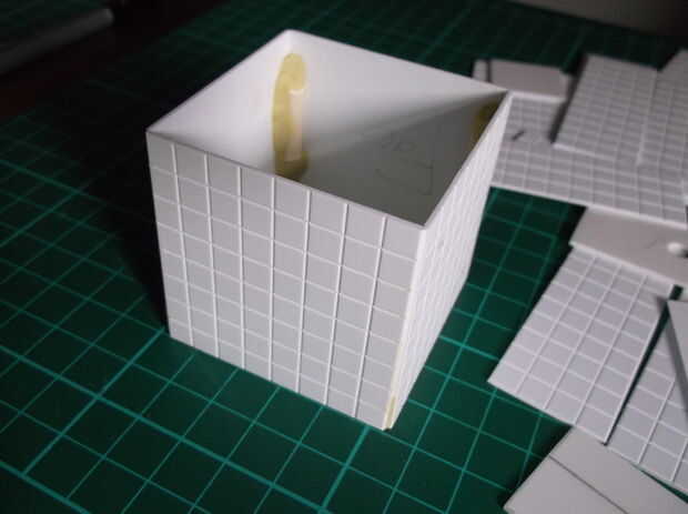 Una vez que todas sus piezas son corte y organizadas, puede comenzar a adherir las piezas, pero de antemano, puede ligeramente arena las líneas de cada pieza para garantizar su piso; sólo tiene que colocar la línea de la pieza sobre un papel de lija hoja de grano 120 (o grano similar) y Lije ligeramente a lo largo de la superficie.