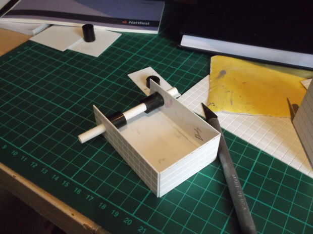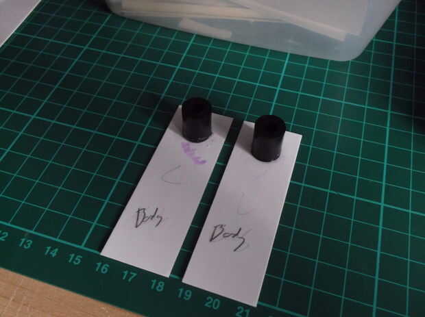 Ahora tienes que pegar las piezas laterales donde se reunirán los brazos a la base. El tubo a través de ambos separadores y ambos extremos para asegurarse de que ambas piezas laterales están perfectamente alineados y pegar las piezas en su lugar de alimentación, es fundamental que alinee lo perfectamente, si hay, los brazos no se alinean contra el cuerpo y parece torcido.
