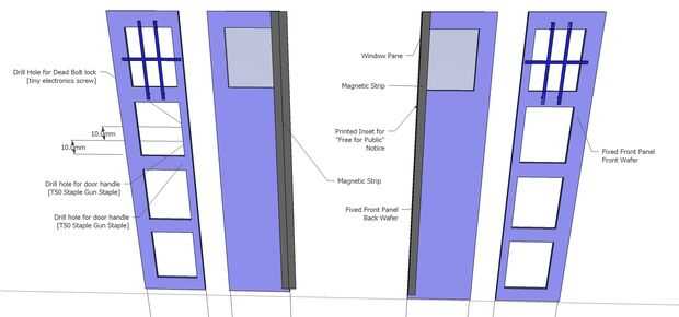 Después de eso, montar las capas como lo hicimos la última vez para que usted obtenga dos mitades limpias. El tornillo de la máquina que representa el bloqueo en su lugar (una gota de pegamento nunca hace daño a nadie) y pegar la grapa pistola de grapas en lugar de la manija de la puerta.
