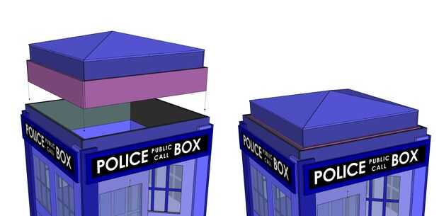 Echa un vistazo en el primer diagrama arriba. Tenga en cuenta que los colores que utilicé aquí son para hacer cada pieza se destacan y después de montar esta parte debe preparar y pintar a la sombra correcta de TARDIS azul. Hay medidas en esta Asamblea de dibujo que son correctos para el modelo virtual, pero tenga en cuenta la advertencia de pie que ya he dado acerca de su proyecto de mundo real. Mente las mediciones. Medida de su modelo real y materiales reales para conseguir un montaje final preciso y bien formado.