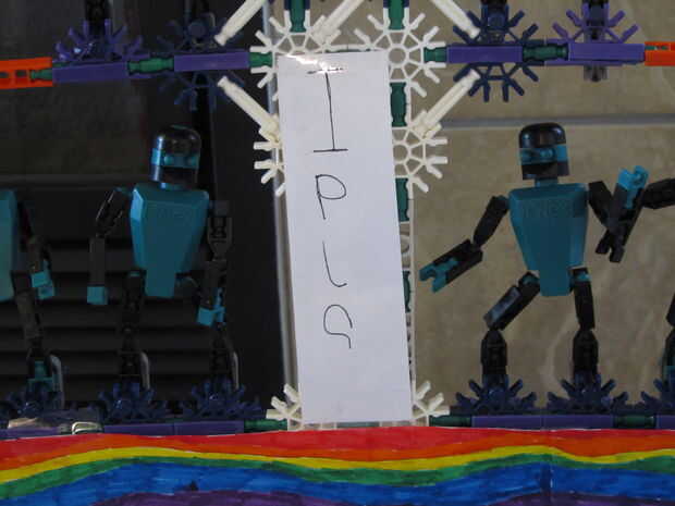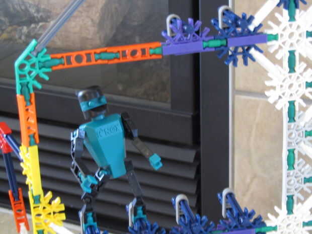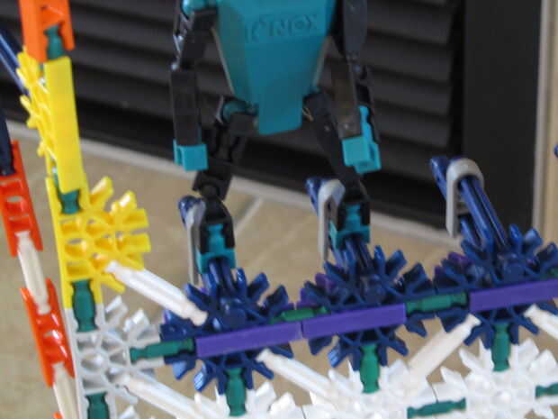 Finalmente, a colocar las decoraciones. Los hombres de K'nex sirven como las esculturas de la relevación. Tenga en cuenta que las piernas tienen que ser más corto que el normal adjuntar al modelo. Van a cada soporte construido.