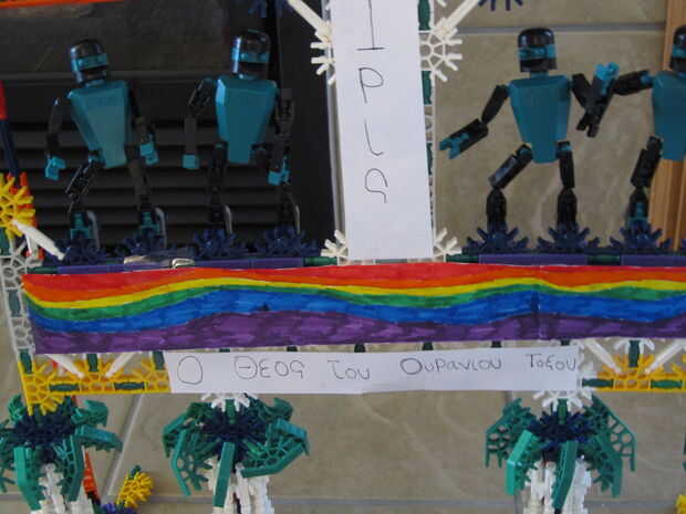 Para crear las decoraciones para el architrave y el resto del templo, usted tendrá que cortar algún papel. Entonces, puede agregar cualquier diseño que usted desea para ellos. Para mi modelo, incluí algunos escritura griega sobre el Iris. Esto es opcional, sin embargo. Para unir estas partes, añadir cinta donde sea necesario y fíjelo al modelo. No te preocupes, la cinta no hace daño a la K'nex de cualquier manera. Una vez haya terminado esto, ¡ todo listo!