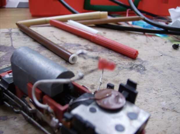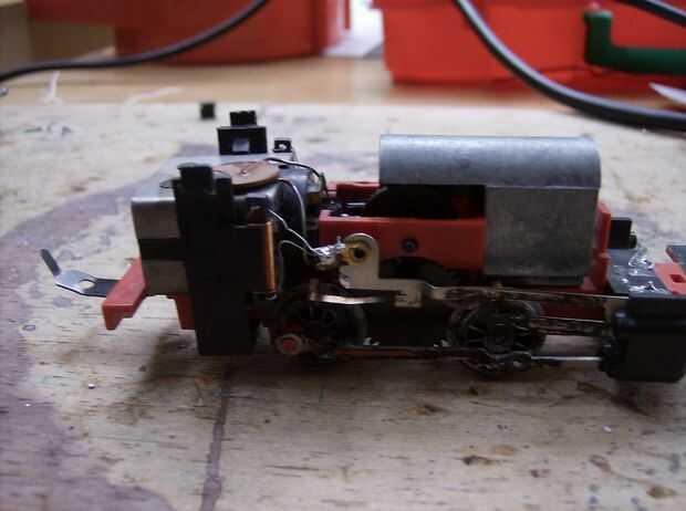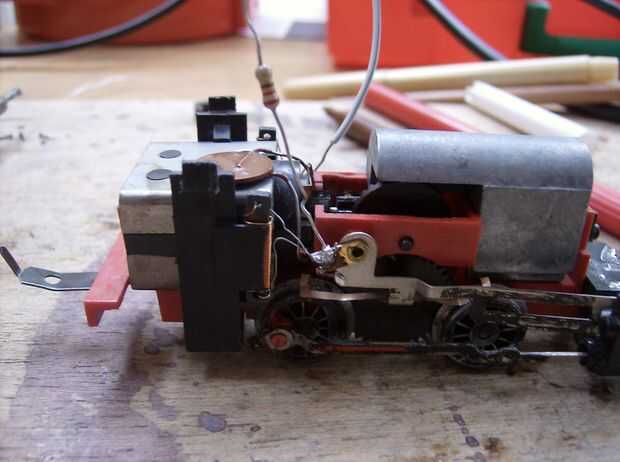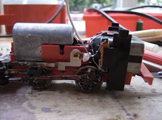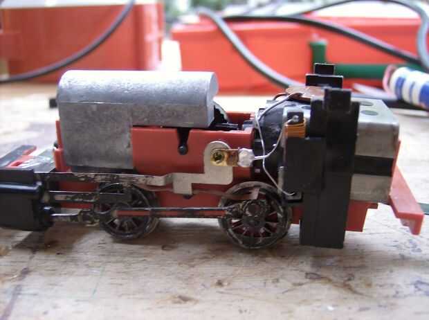 modelo de tren que tiene ruedas de trabajo y un lugar para más coches del tren