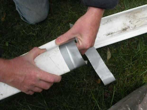 Para que un canal puede ser vaciado en otro, debe ser una bisagra de prueba flexible del agua entre la sección de medio Canal y el canal de generación de onda. La cinta se aplica suavemente en el borde de la cuneta no forma de los pliegues. Pliegues en la cinta del conducto pueden causar fugas en el tanque de la onda. Dos longitudes de la cinta del conducto se aplican a cada borde del canal. Una 3 º longitud de la cinta se aplica para unir los dos canales. Otro pedazo de cinta adhesiva se aplica hacia abajo para evitar que la cinta se pegue a sí mismo y para mejorar el sello con los canales.