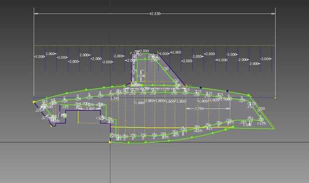 Ahora empiezo la tarea de redacción de la primera parte. Estoy haciendo el longitudinal anterior primero. Voy a hacer todas las piezas de 1/8" lite capas para las cuadernas y mamparos. En mi barco más pequeño de proyecto de prueba, hice algunos mamparos de 1/8" balsa para tratar de ahorrar algo de peso y tenía un montón de problemas de división y agrietarse durante la construcción. Capas Lite es mucho más duradera sin gran parte de la penalización de peso. Traté de mantener el espacio para los mamparos a 2 pulgadas o menos. Entonces 2 pulgadas parece tener una tarea mucho más difícil de adoquín de la tira. Los paneles más que hay, los puntos de pegamento más que llegas a mantener todo en su lugar y mantenga las curvas que desee. Esta parte tomó varias horas para dibujar y creo que se acaba ahora.