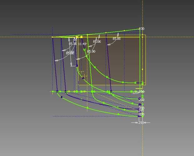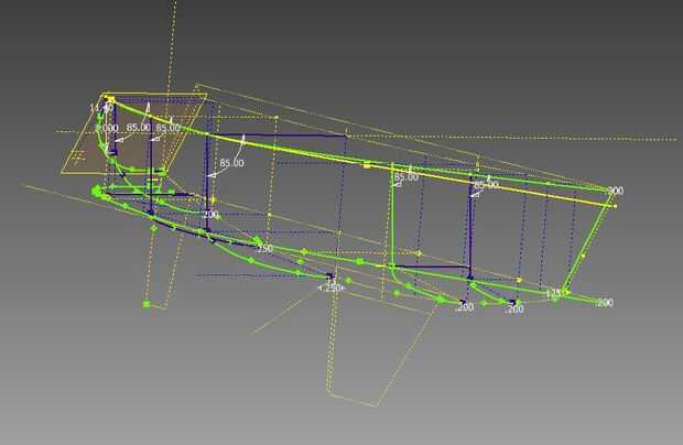 Hacer cortes transversales a loft la forma del casco. Utilice las vistas superiores y laterales para aspirar sobre donde deben ir las cosas. Todo lo hacen las líneas de construcción excepto lo que quieras en las secciones transversales. Si no, cuando loft que va a hacer cosas raras y usted volverá caza a través de bocetos buscando líneas de no construcción en líneas de construcción.