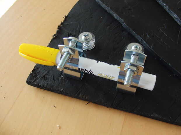 Para asegurarse de que las dos pinzas se alinean entre sí, puse un marcador a través de las dos pinzas antes de marcar dónde taladrar los agujeros para los pernos.