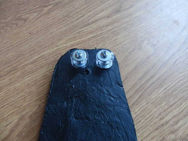 Para las poleas, he usado bobinas de plástico la máquina de coser. Para sujetar la pieza puse arandelas en la parte superior e inferior de la bobina y todo a través de un tornillo de rosca. Me sujetó el bot con una tuerca en el otro lado de la madera contrachapada y dejó lo suficientemente flojo como para que la bobina puede girar libremente.