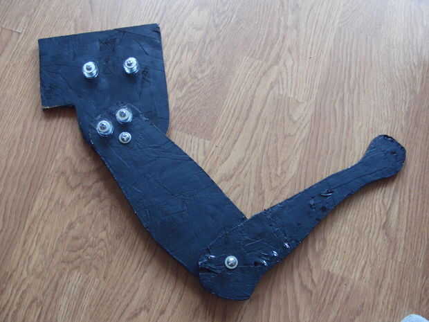Para lograr esto, puse un tornillo a través de la pieza superior, apretar una tuerca en la parte inferior de la primera pieza, coloque el extremo del perno a través de la segunda pieza de madera y luego otra tuerca en la parte inferior. Pongo la lavadora debajo de la cabeza del tornillo y cada tuerca para permitir la articulación girar fácilmente.