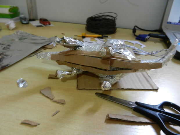 A continuación, usted puede construir el propio cuerpo. Sólo tiene que utilizar sellado cinta y cartulina (o lo que quieras).