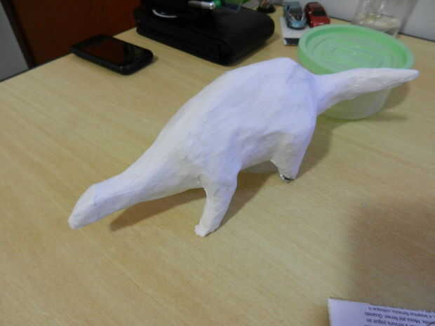 Emerge el papel en la mezcla y luego ponerlo en el dino.