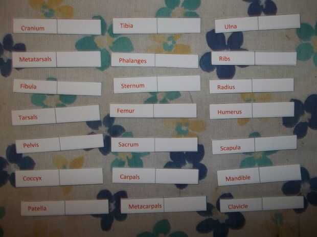 Escribir o escriba una lista de los huesos. Esta es la lista que hice: