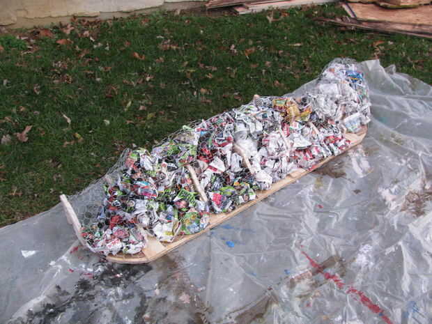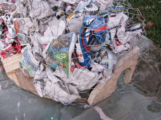 Paso 2: Envolver con el alambre de pollo, cosas con periódico