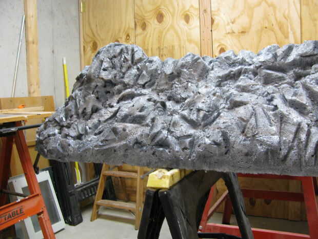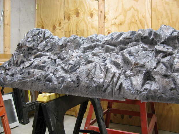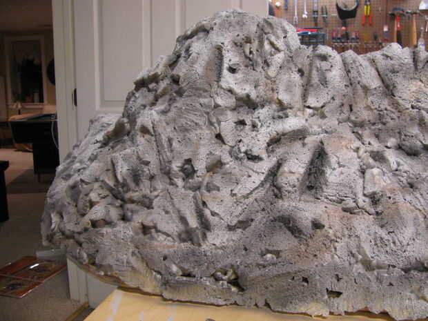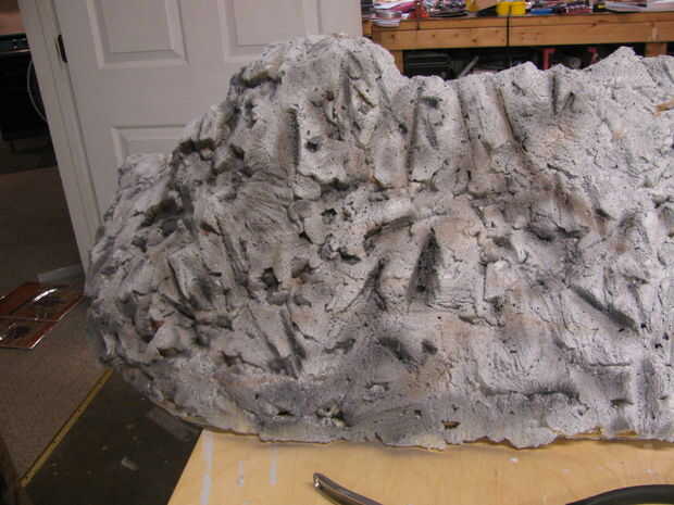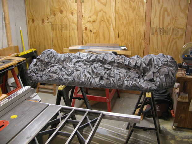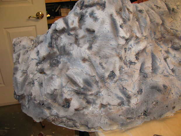 Con las pinturas de acrílico estándar (de Hobby Lobby), mezclan algunos colores gris y marrón oscuros para abastecerlo a través de mi aerógrafo. Los dos primeros pasos no se veían demasiado bien--la montaña parecía tenía un patrón de camuflaje de mal. Tomó varias capas antes de él comenzó a parecerse a la roca real.