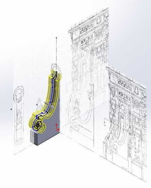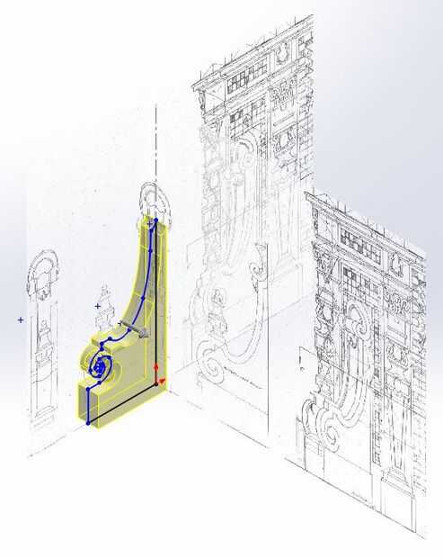 Después tuve esbozo bosquejo básico que sacó el ancho que necesitaba. El ancho que necesitaba era fácil de alinear con la vista frontal del contrafuerte.