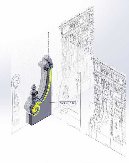 El remate fue fácil. Todo lo que necesitaba hacer era seleccionar la vista lateral y dibujar una ciudad de la línea central del centro del remate. Usando polilínea trazó el contorno de la mitad del remate. Entonces utiliza el comando girar y selecciona los línea central y el eje que giran en torno.