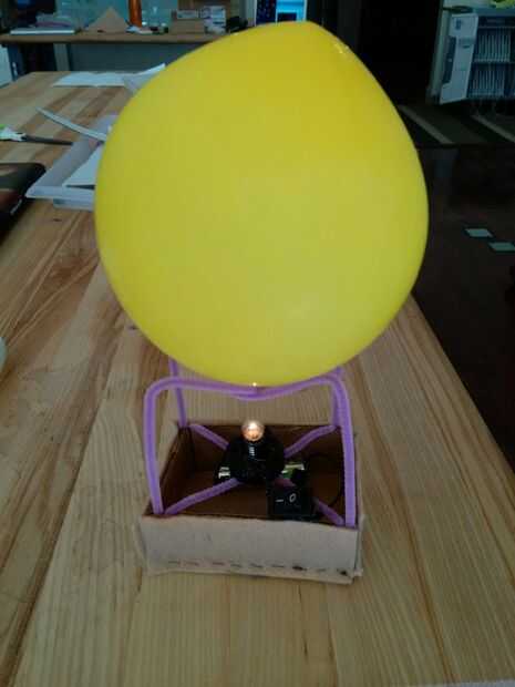 Tomar los limpiapipas y cortar en dos partes que forman una "x" cuando se coloca encima de la caja. Los extremos de los limpiapipas pueden caber en los agujeros de la caja. Algunos otros limpiadores de pipa y una "m" fuera de ellos. También ésos van en los orificios. Después de que haya terminado, debe parecerse a la foto de arriba, menos el balón. Con esto, puede insertar el circuito interior. El titular de la bombilla irá en el centro de la "x", y puede caliente pegamento el interruptor en el lado. Una vez que infle el globo y ponérselo, haya terminado!