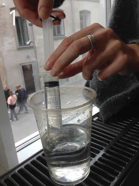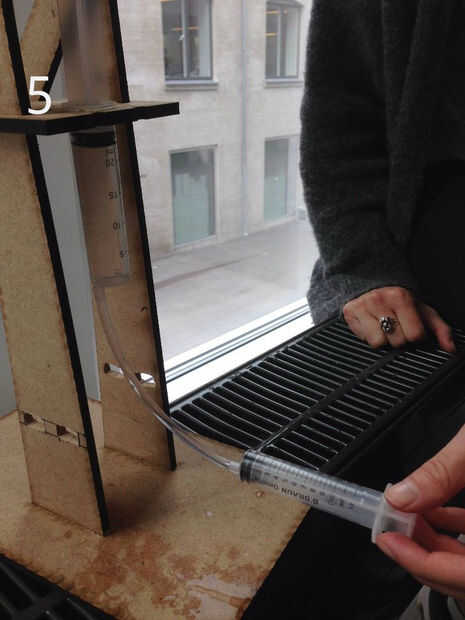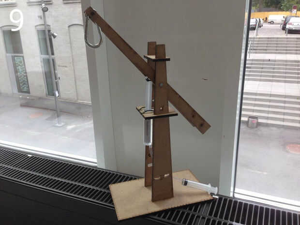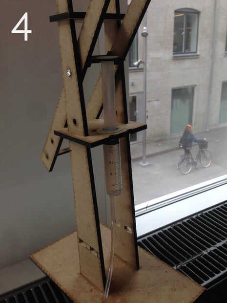 Para agregar el sistema hidráulico, usted necesita llenar la jeringa con agua. Asegúrese de que hay no(!) de aire en el tubo de plástico o jeringas.