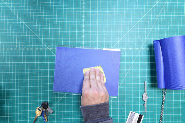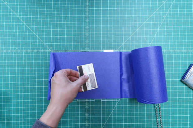 1. Aplique la cinta: El primer paso es alinear la cinta en la cama para que no cubra las ranuras para los clips de la plataforma construida. Es muy importante suavizar la cinta para que no queden burbujas. He encontrado que mi licencia de conducir es la mejor herramienta para este trabajo.