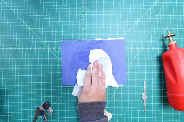 3. Limpie con Alcohol isopropílico: Esto elimina el polvo de lijado y cualquier aceite de los dedos que pueden ser en la cinta. Darle unos segundos para secar y estará listo para ir. Preparación de la plataforma de construcción