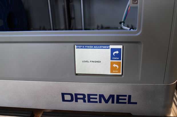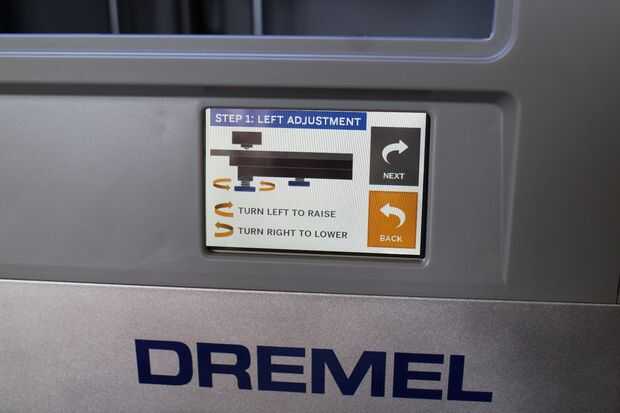 Las instrucciones en la pantalla táctil son bastante sencillas. Básicamente sólo poner un pedazo de papel entre la boquilla y la cama y ajuste los tornillos hasta que la brecha es justo. El papel debe deslizarse fácilmente dentro y fuera en el espacio teniendo una cantidad muy pequeña de la fricción. Hay solamente tres tornillos de ajuste, así que es fácil nivelar la plataforma rápidamente.