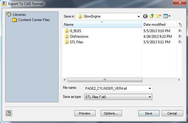 Usar Inventor, exportar el archivo a un formato STL. Esto se logra haciendo clic en archivo -> Exportar -> formato de Cad. En el cuadro de diálogo de CAD, seleccione STL en el guardar como tipo cuadro desplegable. (Ver imagen abajo).