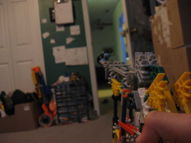 este es mi K'nex la ametralladora. Dispara 8 tiros y lanzamientos de bandas de goma. Tiene una rueda que puede girar a su propio ritmo, y si disparas a todos al mismo tiempo puede tener un arma de tiro afectan, donde las balas difundir todo. Por lo t