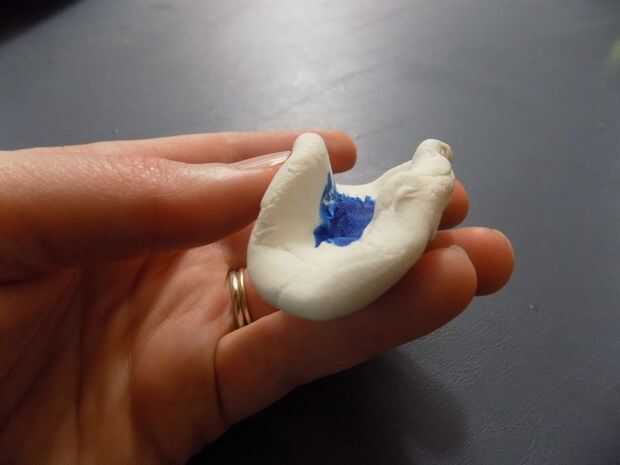 Color del centro de la crepe con un marcador. ¡ No toque el área coloreada! La tinta se en sus manos y puede contaminar a otras piezas de barro cuando se mueve diferentes colores.