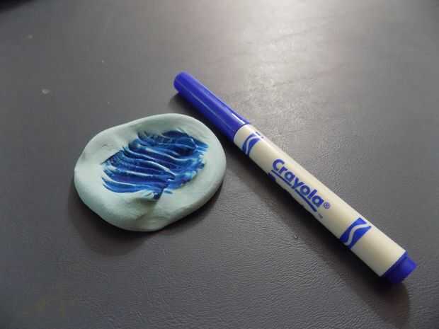 Amasar la arcilla y ver como la tinta del marcador de colores el barro sin conseguir tinta en las manos.
