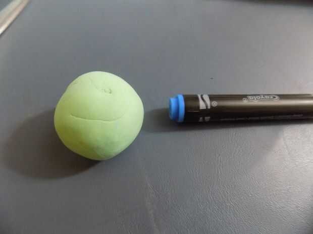 En primer lugar, rodar una bola de arcilla y presione firmemente en el extremo inferior de un marcador "el tamaño del dedo". Esto será la cabeza o el cuerpo de tu títere, así que la forma en la forma básica de tu personaje. Cuando se trabaja con jóvenes estudiantes y los paquetes de.5 oz, digo generalmente los estudiantes para utilizar la mitad de su arcilla de su cuerpo o la cabeza y guardar el resto para añadir detalles.