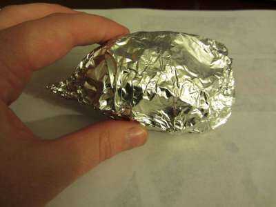 Cubrir el esqueleto de alambre en papel de aluminio para crear una base lisa y sólida. Tuve que rellenar el esqueleto de alambre con algunos arrugado periódico con el fin de proporcionar una plataforma para el papel de aluminio.
