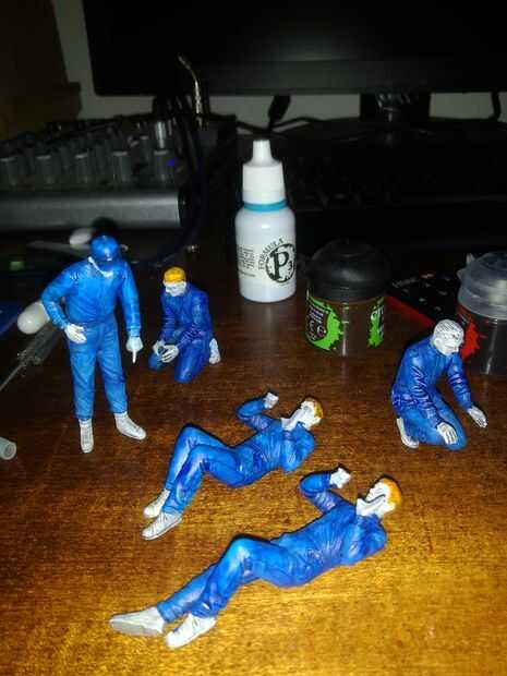 Pelo puede ser difícil y algunas personas simplemente no corte... sí, Chistes bien no son mi punto fuerte. Así que, una vez más el lavado negro ha hecho un montón de trabajo duro por nosotros y todo lo que queda es añadir un poco de color. He decidido tener dos con cabello castaño, dos rojas y una rubia. Para las grietas de pelo marrón y rojas use un castaño por ejemplo lavado apropiadamente coloreados para naranja marrón, quemado de pelirroja. Para el cabello rubio, omita el paso de lavado. El siguiente paso utiliza una técnica llamada pincel seco. Esta técnica va a arruinar cualquier cepillo normal y te aconsejo comprar un cepillo dedicado para el trabajo. La idea básica es cargar un pincel con pintura y limpie tanto como usted puede usar un pedazo de toalla de cocina. Hasta que sólo manchas de pintura casi seca permanecen en las cerdas. Ello trabajando el cepillo en círculos en la toalla de cocina y luego probarlo en la parte posterior de mi pulgar. Puede entonces toma este cepillo y arrastre a través de la veta de la modelo. Por ejemplo el pelo fluye de adelante hacia atrás por lo que he trabajado el cepillo de derecha a izquierda. A medida que los contornos del modelo suben y bajan la presión ejercida sobre las cerdas hace asimismo. Esta variación en la presión sale de diferentes cantidades de pintura en las zonas elevadas y empotradas dejando destacados de apariencia naturales en las zonas elevadas del modelo. El color utilizado para pincel seco debe ser alrededor de 5 a 6 tonos más claros que el color base que desee resaltar, pero me gusta dramática destaca que los modelos con un look de novela casi gráfico bosquejado.