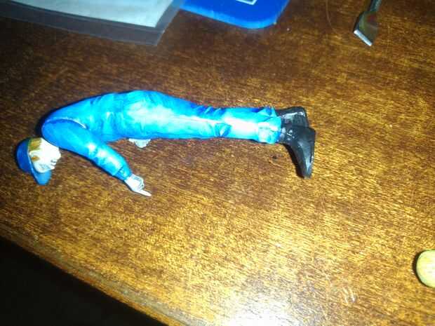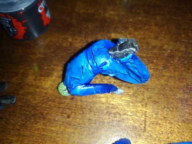 No hay mucho única a este paso... Wow, eso fue realmente mal incluso para mí. En serio aunque este siguiente paso simplemente consiste en pintar las zonas oscuras. Para estos modelos es las botas. Tome su pintura negra y mezclar con una cantidad muy pequeña de agua. Nunca pintar directamente de la olla. La pintura será muy gruesa y se agrupan, ocultando detalles. Debido al agua y el Undercoat blanco puede tardar un par de capas pero sea paciente. La pintura más fina da mucho mejores resultados. Después el negro es seco que puede volver y pase las áreas negras con un gris oscuro para agregar destacados.