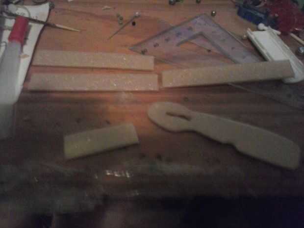 Ahora, desde hoja de espuma de embalaje fino, corte las piezas principales. Antes de hacer esto, debería dibujarlos primero de precisión y escala.