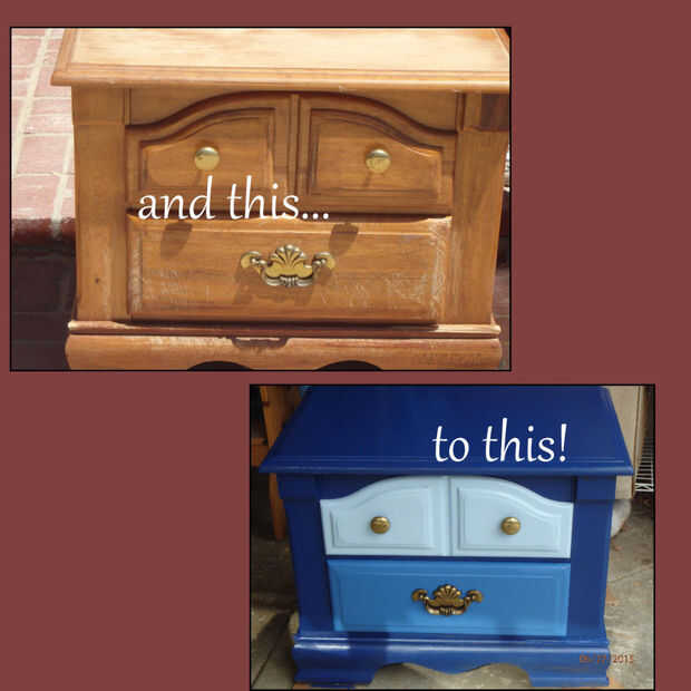 Antes y después fotos hablan por sí mismos. Las perillas de madera fueron pintadas el azul oscuro original, las piezas de latón sólo necesitan limpieza y pulido.