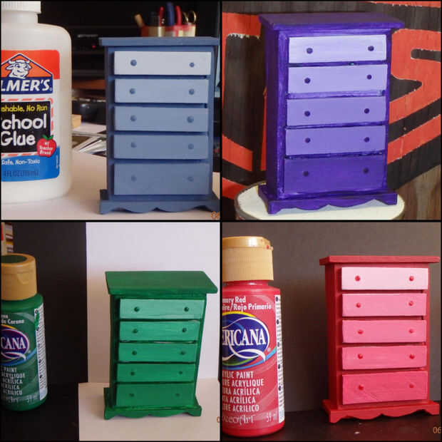 Utilizando pinturas de arte, hice las diluciones según el esquema visto en el paso 2, arriba. Obviamente, puede utilizarse cualquier combinación de colores, dependiendo del efecto deseado. Terminé eligiendo azul como se indica.