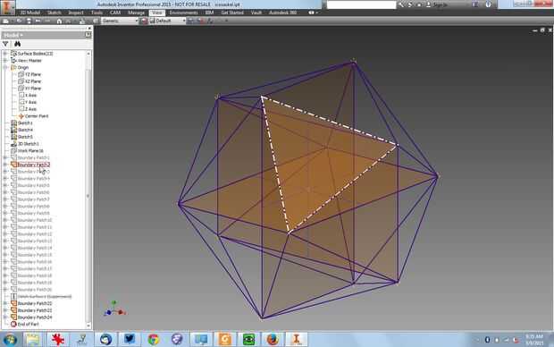 En mi último Instructable, mostré cómo construir poliedros y sus duales en Autodesk Inventor sin ningún matemáticas. Lamentablemente sistema de restricción de Inventor se rompe cuando se trata el icosaedro 20 caras, la más complicado de los sólidos platónicos.
