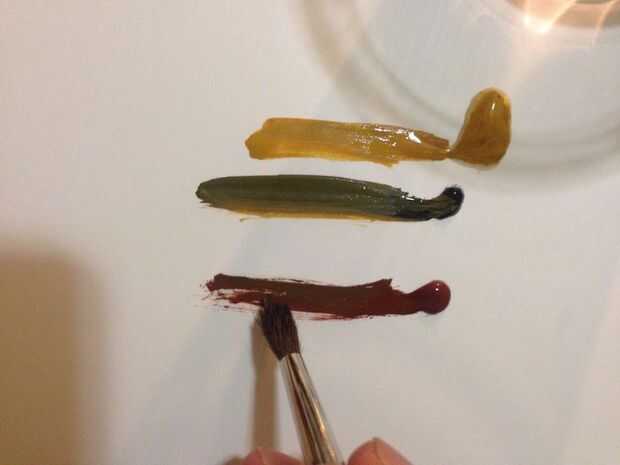 3. aplique otro ocre amarillo y Siena más afectados con la punta del cepillo esta vez usan menos agua, aplicar al azar. imitarán el moho y la pátina que se convirtió en la metal.