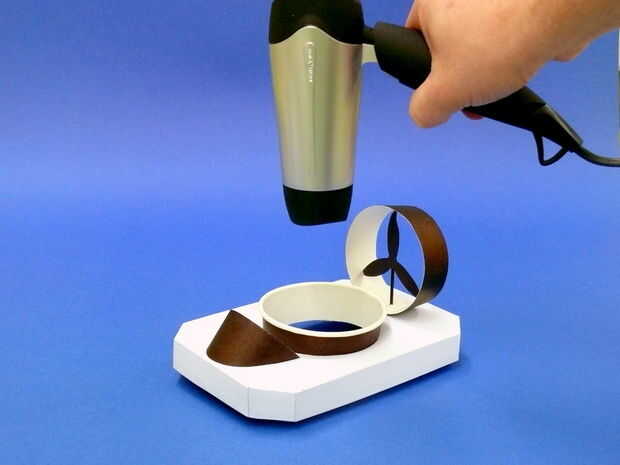 Para nuestro modelo planteado sobre un cojín (suponemos que una bien hecha) simplemente golpe (simplemente la boca o mejor secador de pelo) en el agujero de a bordo. Es muy importante que el flujo de aire dirigido hacia abajo, de lo contrario el modelo huirá. Esto requiere algo de entrenamiento! o) si se puede desconectar el calor de un secador de pelo, será incluso mejor. "Profesionales de" volar este modelo con gran precisión en cualquier dirección - volar sobre obstáculos hasta 2-3 mm.