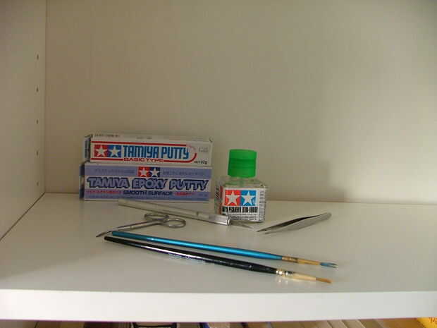 -Tamiya putty o epoxi masilla (útil si desea reparar una pieza rota o hacer uno nuevo)