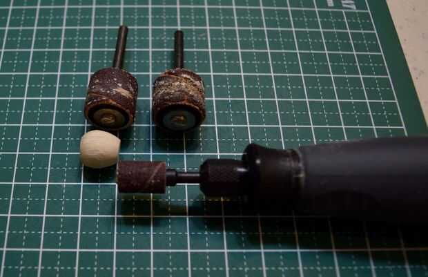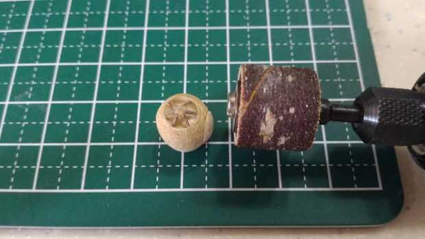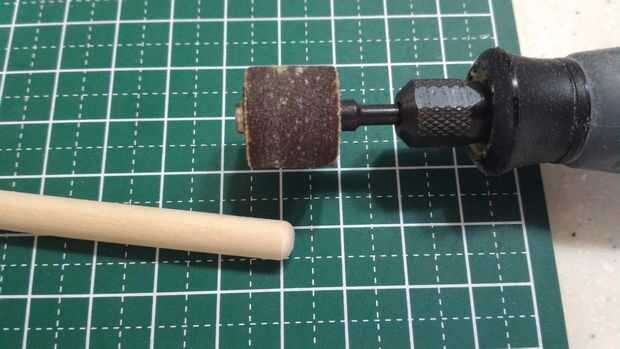 Ahora comienza la parte difícil de la construcción - formar la pieza separada en el fuselaje ovalado familiar de la corbata. Lijar cuidadosamente el fuselaje áspero, forma ovalada de la corbata con 1/2 y 1/4 pulgadas de los accesorios de lijadora de tambor grueso/fino para obtener la curva deseada para la parte delantera y parte trasera. Manejo de la parte era difícil debido al pequeño tamaño y forma del fuselaje.