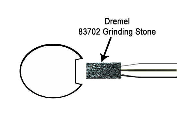 Una cavidad para simular el reactor de ionización solar fue tallada en el extremo posterior con un #124 y #125 alta velocidad de corte y acabada con #953 óxido de aluminio pulido de piedra y un redondo pulido piedra los archivos adjuntos. De alguna manera no puedo encontrar la designación del accesorio piedra pulido redondo que he usado desde la Web de Dremel. En cualquier caso, sólo te refieren al accesorio como un «almiar ronda» para el resto de los pasos.