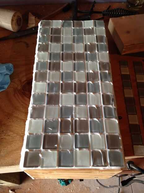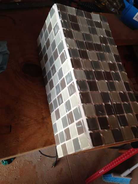 luego cubrir la parte posterior de la baldosa con silicona transparente y aplique a su caja. Tarda 24-49 horas para recibir a todos de que se seque así que le recomendamos afilar todos tus cinceles y brocas. Si lo tuyo son sharp, luego bien. Esta silicona wiill ser la lechada así poner un montón sobre y limpiar el azulejo al hortera.