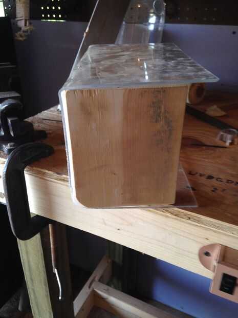 Siguiente es cubierta por la parte superior e inferior con un 2 * 6. Lo hice un poco de que forma las esquinas para obtener un ajuste apretado pero no lo sude porque todo es cubierto. Usé madera de un cajón porque es gratis y me encanta las plataformas.