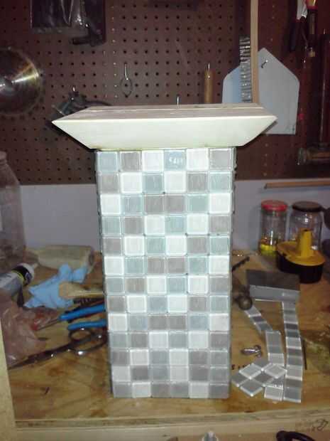 El mejor lugar para empezar será decidir cuánto la quieres y que modular. Cuando digo modular que estoy describiendo las medidas deban reflejar las dimensiones de las baldosas de vidrio. Fui con catorce pulgadas de altura y tan cerca de 6 1/4" ancho como podría conseguir.