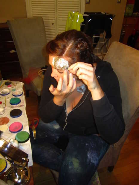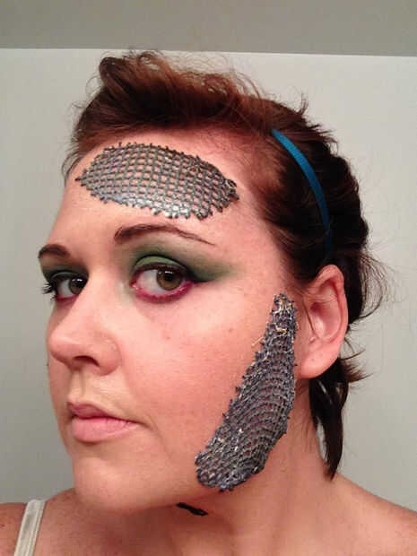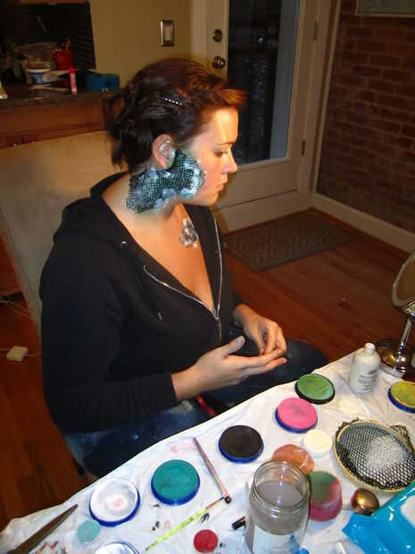 Mirando hacia atrás en esto y que lo usa durante toda la noche, asegúrese de que aplique la piel de serpiente en lugares que no se mueven alrededor de demasiado. La segunda vez que me puse el traje de este año, no poner tanto en mi cuello porque hizo el tramo material y empezar a pelar si giré mi cabeza demasiado. Para ello, llevaba alrededor de algun pegamento de pestañas líquida para reparaciones rápidas.